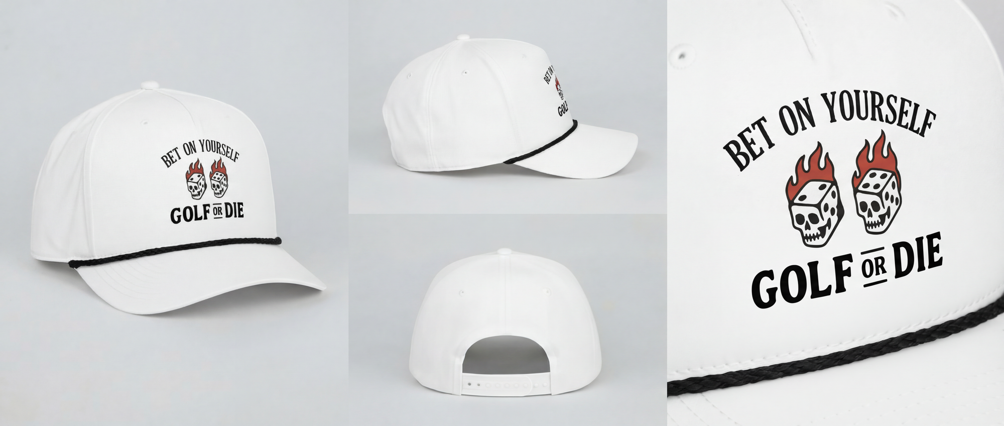 Save $50 when you combo the Golf or Die Game Set with our classic flaming dice snapback hat. Some days you just can’t miss — and that’s what the Hot Roller Combo Pack is all about. You’ll get the Golf or Die Game Set to fire up the bets on the course, plus our classic Golf or Die Snapback to keep you looking sharp while you’re raking in chips.